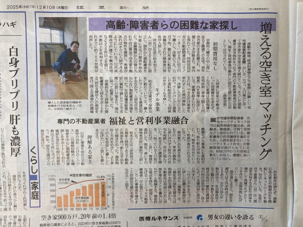 居住支援法人とは住宅セーフティーネット法に基づき、 住宅確保用配慮者に対して住まいの相談、物件紹介、見守りなどを行う法人。